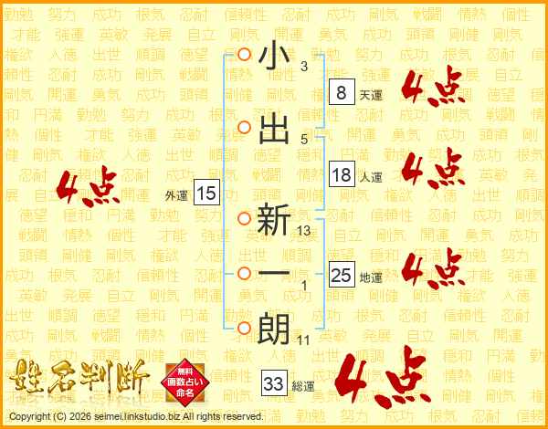 小出新一朗さんの総運は33画の4点!