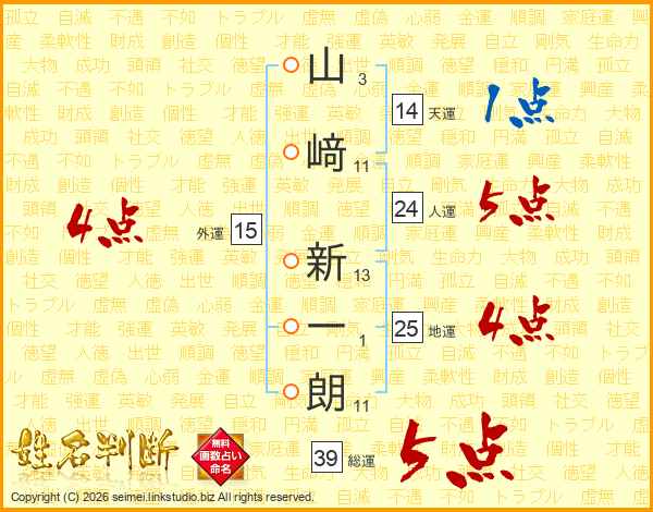 山﨑新一朗さんの総運は39画の5点!