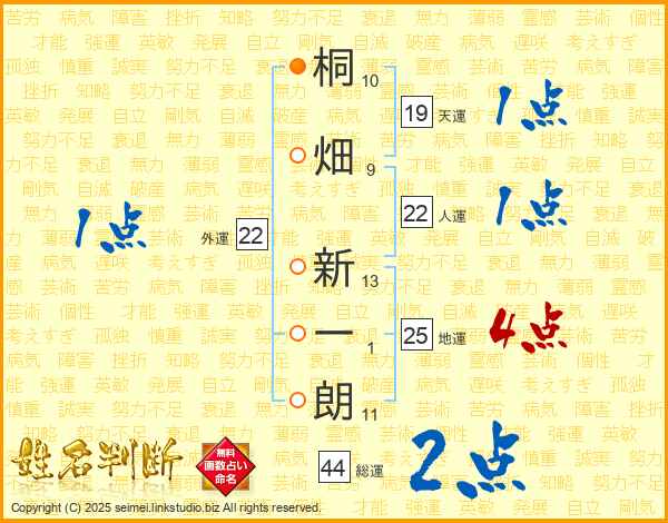 桐畑新一朗さんの総運は44画の2点!