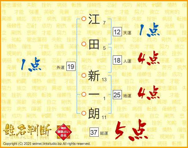 江田新一朗さんの総運は37画の5点!