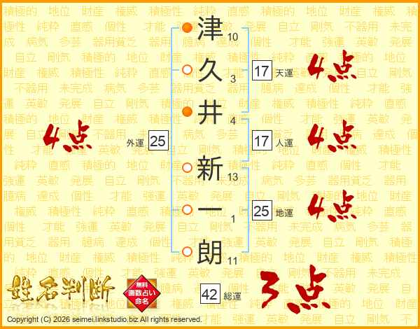 津久井新一朗さんの天運は17画の4点!
