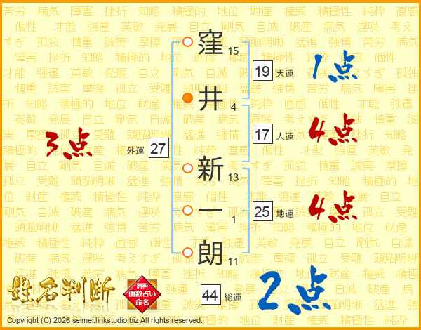 窪井新一朗さんの総運は44画の2点!