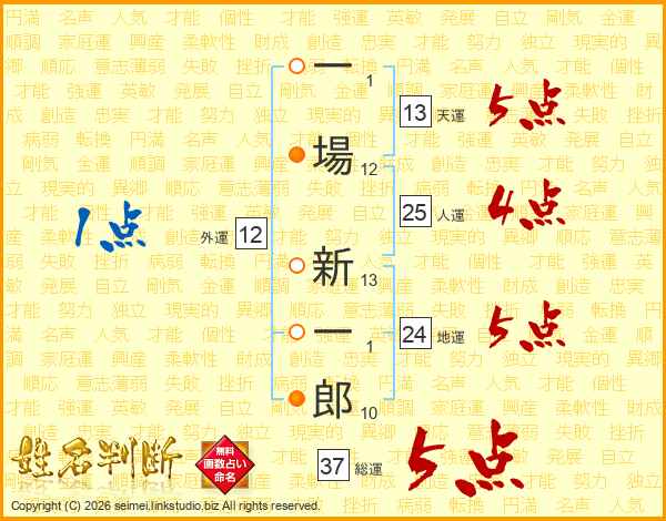 一(1画)場(12画) 新(13画)一(1画)郎(10画)