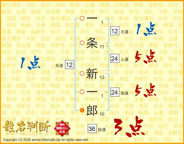 一条新一郎さんの総運は36画の3点!