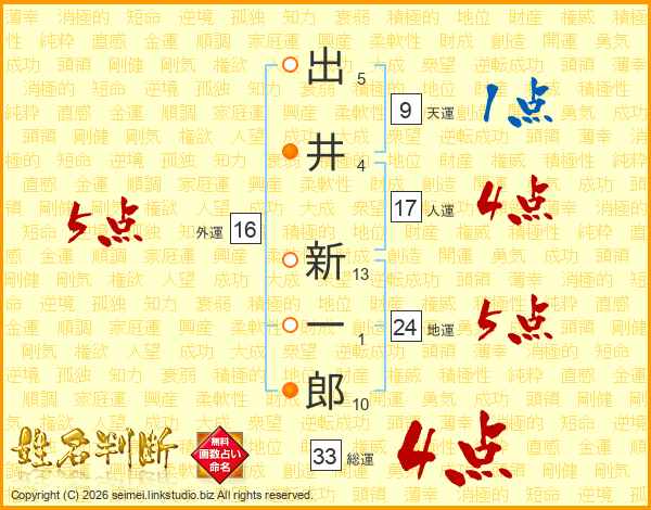 出井新一郎さんの総運は33画の4点!