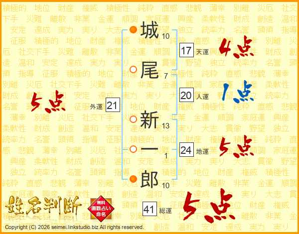 城尾新一郎さんの総運は41画の5点!
