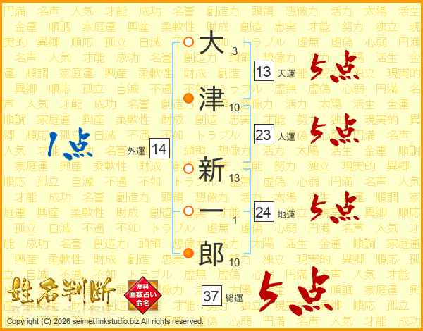 大津新一郎さんの総運は37画の5点!