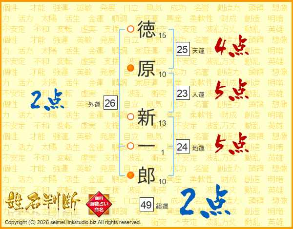 徳原新一郎さんの人運は23画の5点!
