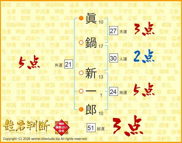 眞鍋新一郎さんの天運は27画の3点!