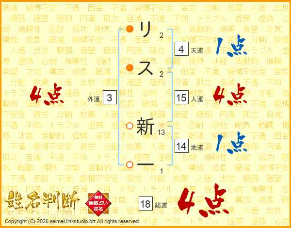 リス新一さんの総運は18画の4点!