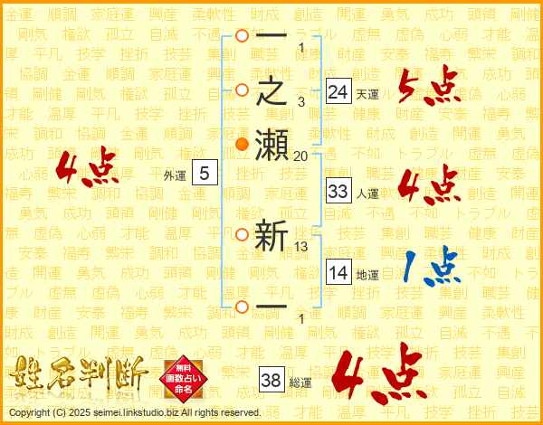一(1画)之(3画)瀬(20画) 新(13画)一(1画)