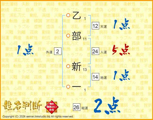 乙部新一さんの総運は26画の2点!