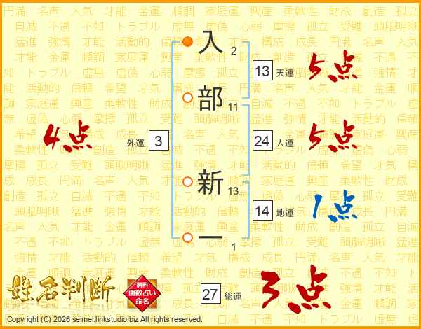 入部新一さんの総運は27画の3点!