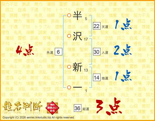 半沢新一さんの人運は30画の2点!