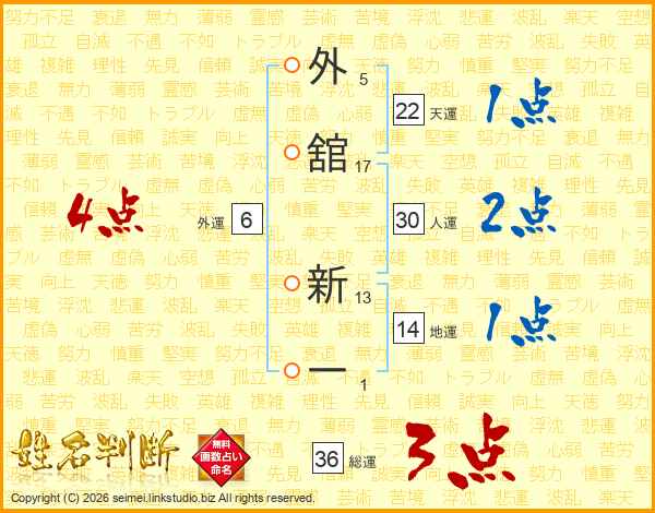 外舘新一さんの総運は36画の3点!