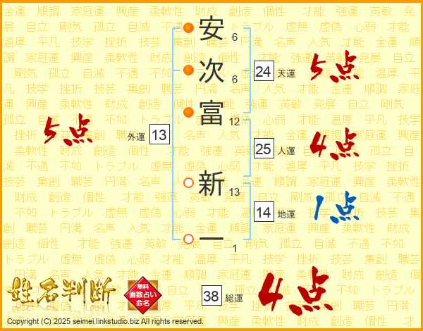 安次富新一さんの総運は38画の4点!