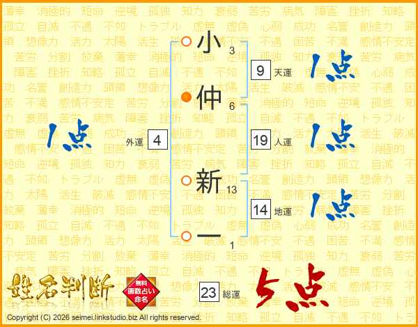 小仲新一さんの総運は23画の5点!