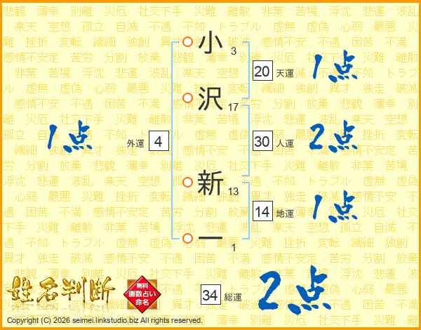 小沢新一さんの総運は34画の2点!