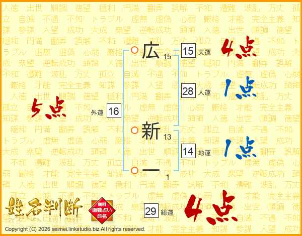 広新一さんの総運は29画の4点!