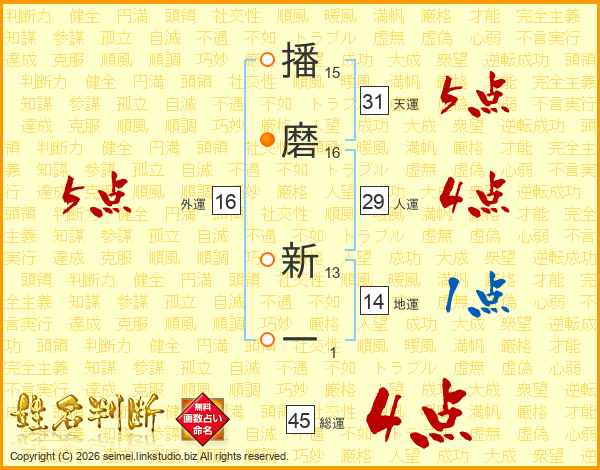 播磨新一さんの天運は31画の5点!