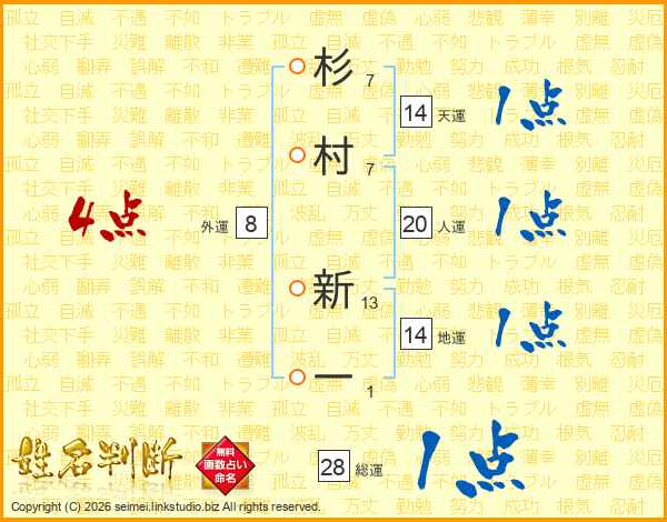 杉村新一さんの天運は14画の1点!
