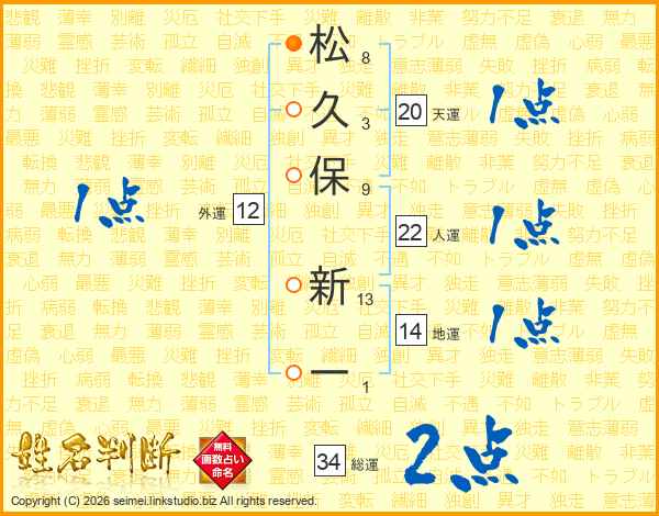 松久保新一さんの総運は34画の2点!