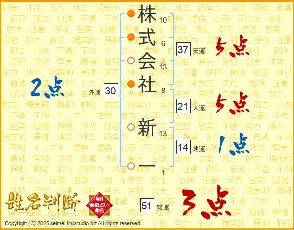 株(10画)式(6画)会(13画)社(8画) 新(13画)一(1画)