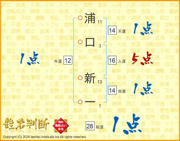 浦口新一さんの天運は14画の1点!