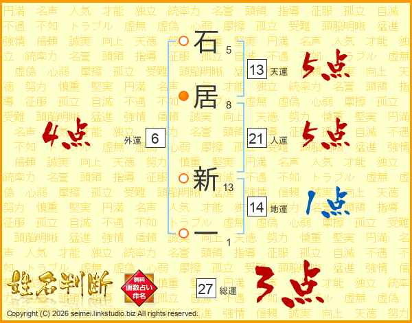 石居新一さんの天運は13画の5点!