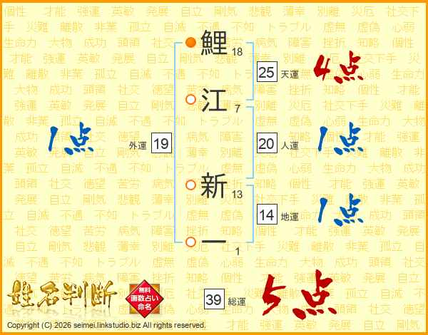 鯉江新一さんの総運は39画の5点!