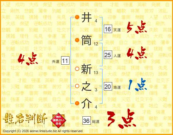 井筒新之介さんの総運は36画の3点!
