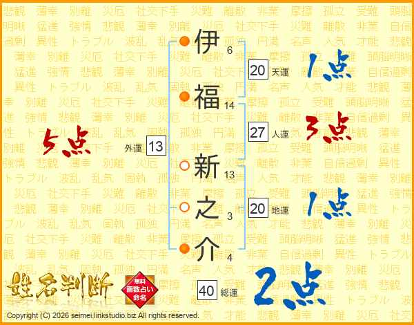 伊福新之介さんの外運は13画の5点!