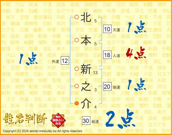北(5画)本(5画) 新(13画)之(3画)介(4画)