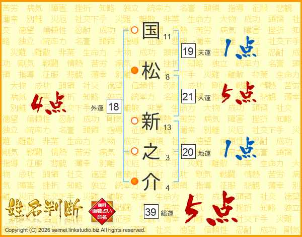 国(11画)松(8画) 新(13画)之(3画)介(4画)