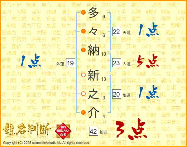 多(6画)々(6画)納(10画) 新(13画)之(3画)介(4画)