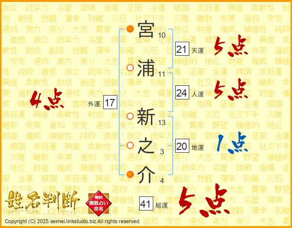 宮浦新之介さんの総運は41画の5点!