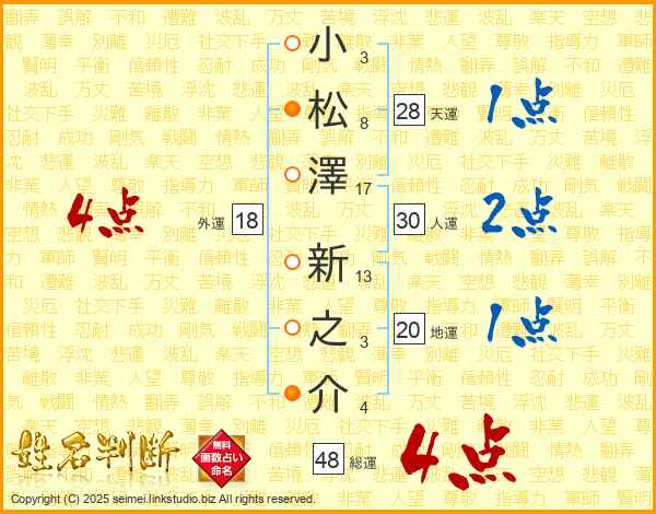 小松澤新之介さんの総運は48画の4点!