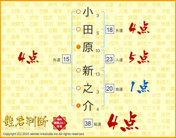 小(3画)田(5画)原(10画) 新(13画)之(3画)介(4画)