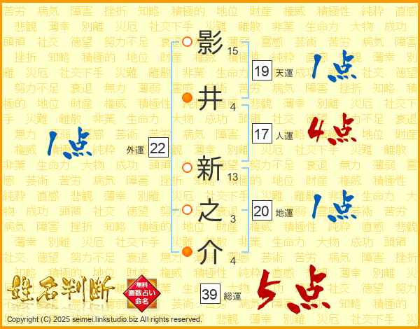 影(15画)井(4画) 新(13画)之(3画)介(4画)
