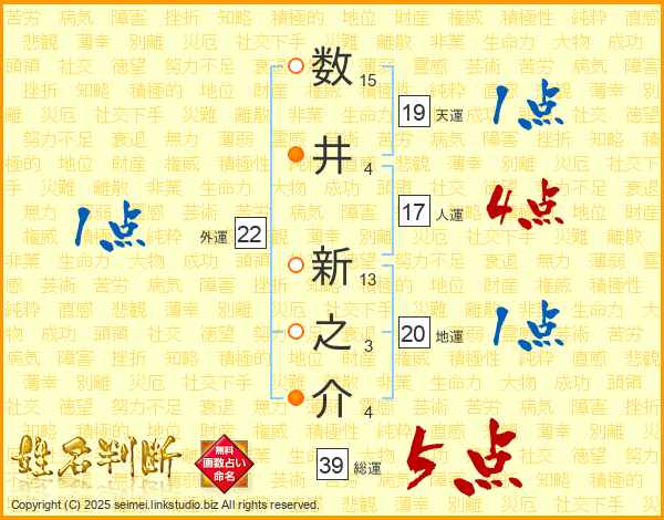 数(15画)井(4画) 新(13画)之(3画)介(4画)