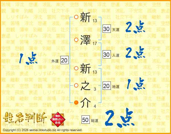 新澤新之介さんの天運は30画の2点!