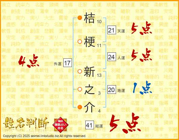 桔(10画)梗(11画) 新(13画)之(3画)介(4画)