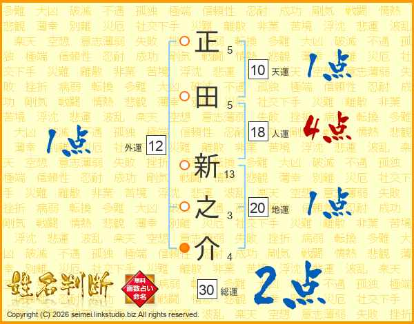 正田新之介さんの総運は30画の2点!