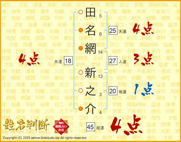 田名網新之介さんの天運は25画の4点!