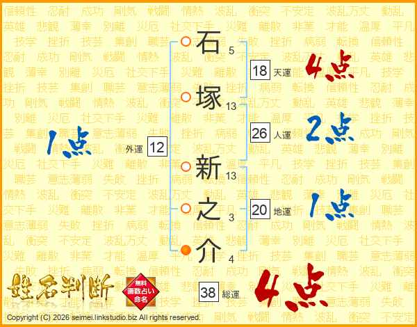 石(5画)塚(13画) 新(13画)之(3画)介(4画)