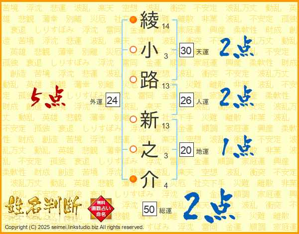 綾(14画)小(3画)路(13画) 新(13画)之(3画)介(4画)