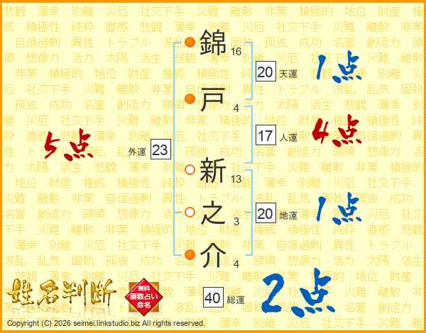 錦戸新之介さんの外運は23画の5点!