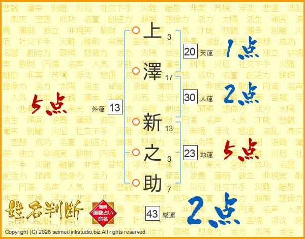 上澤新之助さんの総運は43画の2点!