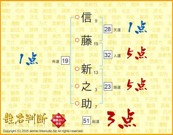 信藤新之助さんの人運は32画の5点!