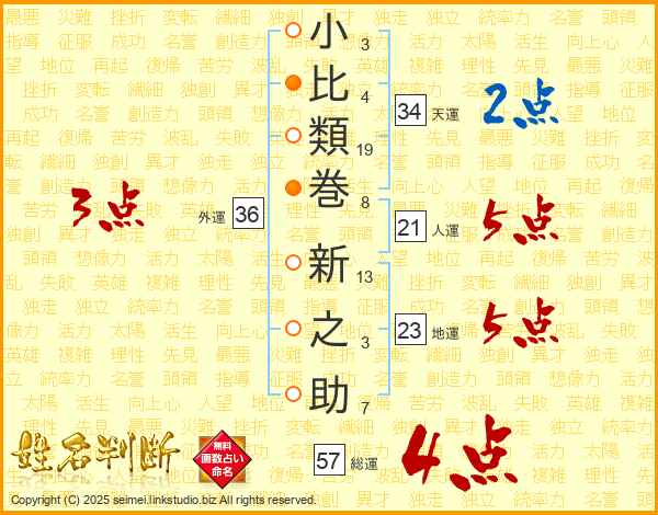 小(3画)比(4画)類(19画)巻(8画) 新(13画)之(3画)助(7画)